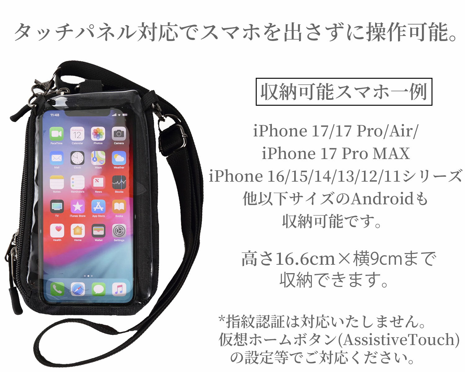 ■対応機種: 高さ16.5cm×横9cmまでのスマートフォン