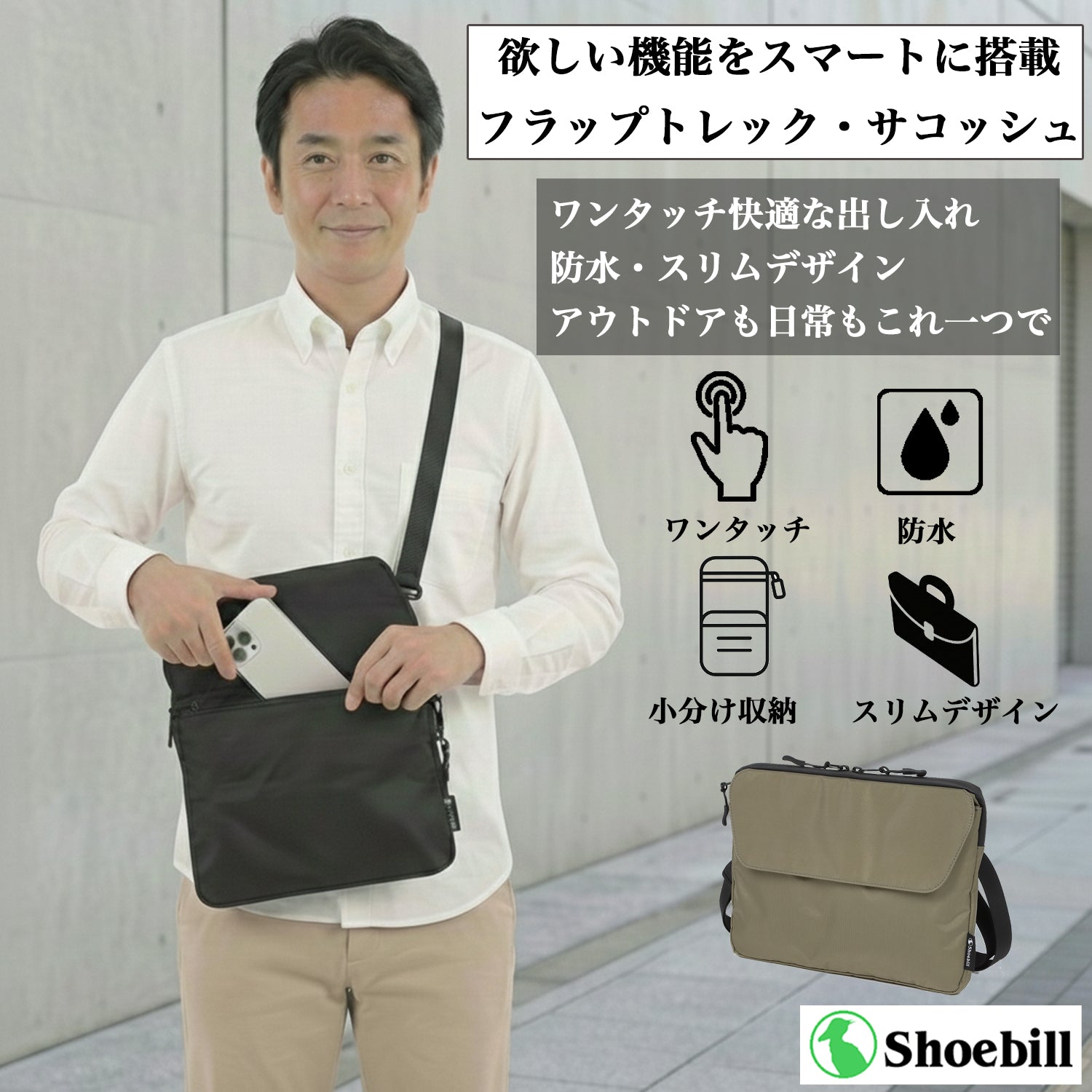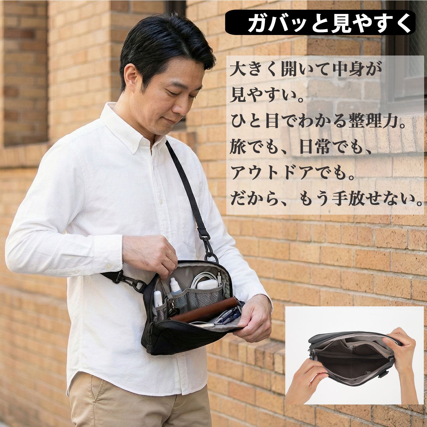 「大きなバッグは不要だが、スマホや財布、タブレットはスマートに持ち運びたい。」