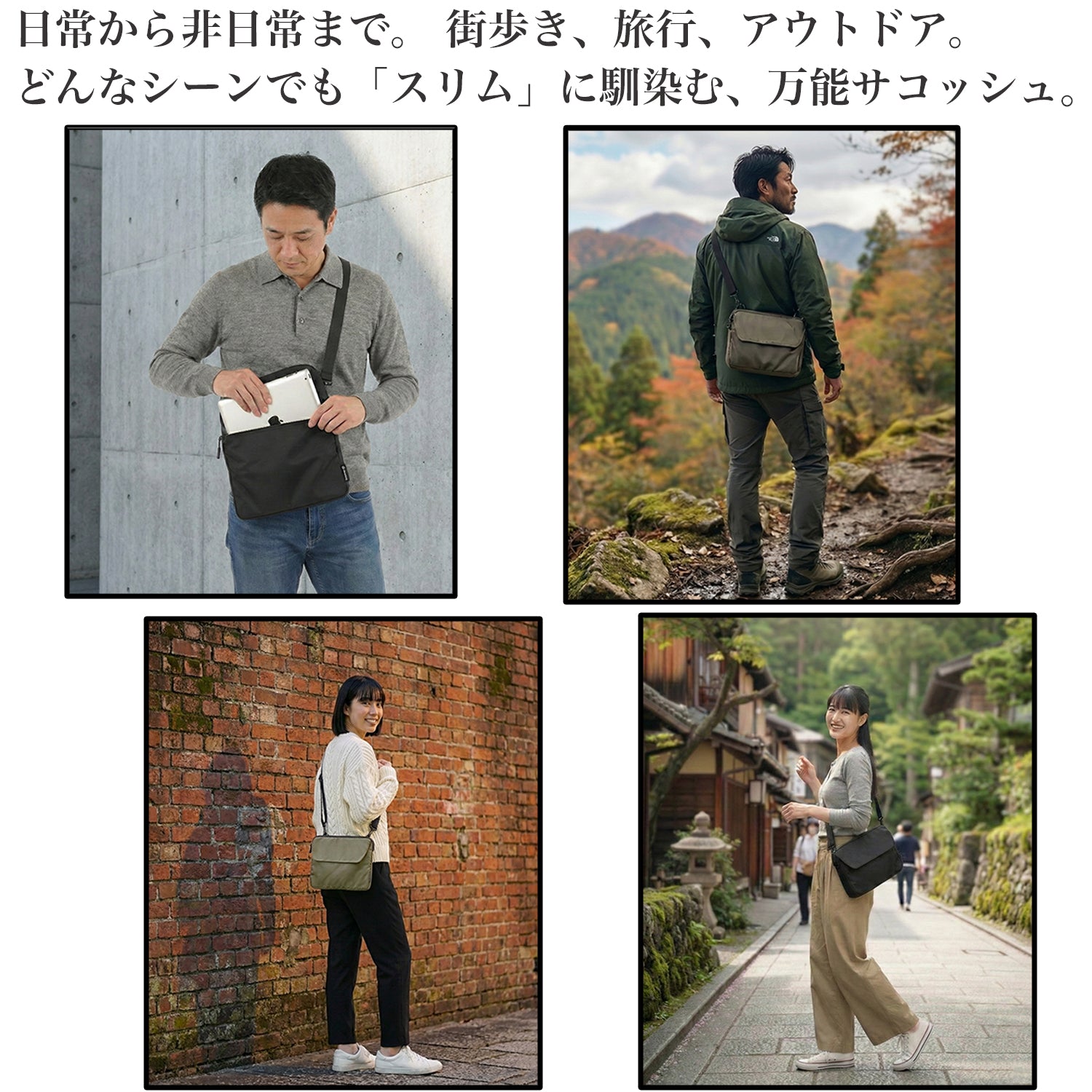 ・アクティブな動きに対応:身体にピタッとフィットするため、自転車移動やアウトドアでもバッグが暴れず快適です。